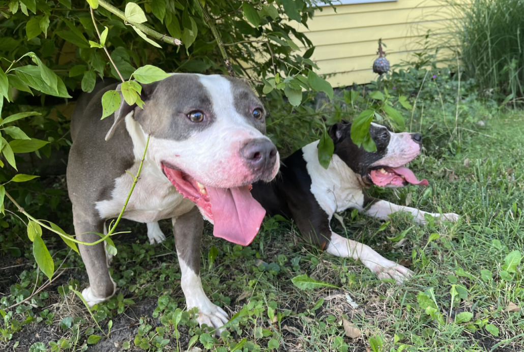 Two very large pitties found running around in Bates-Hendricks neighborhood. No collar, but very hot and concerned for their safety.