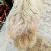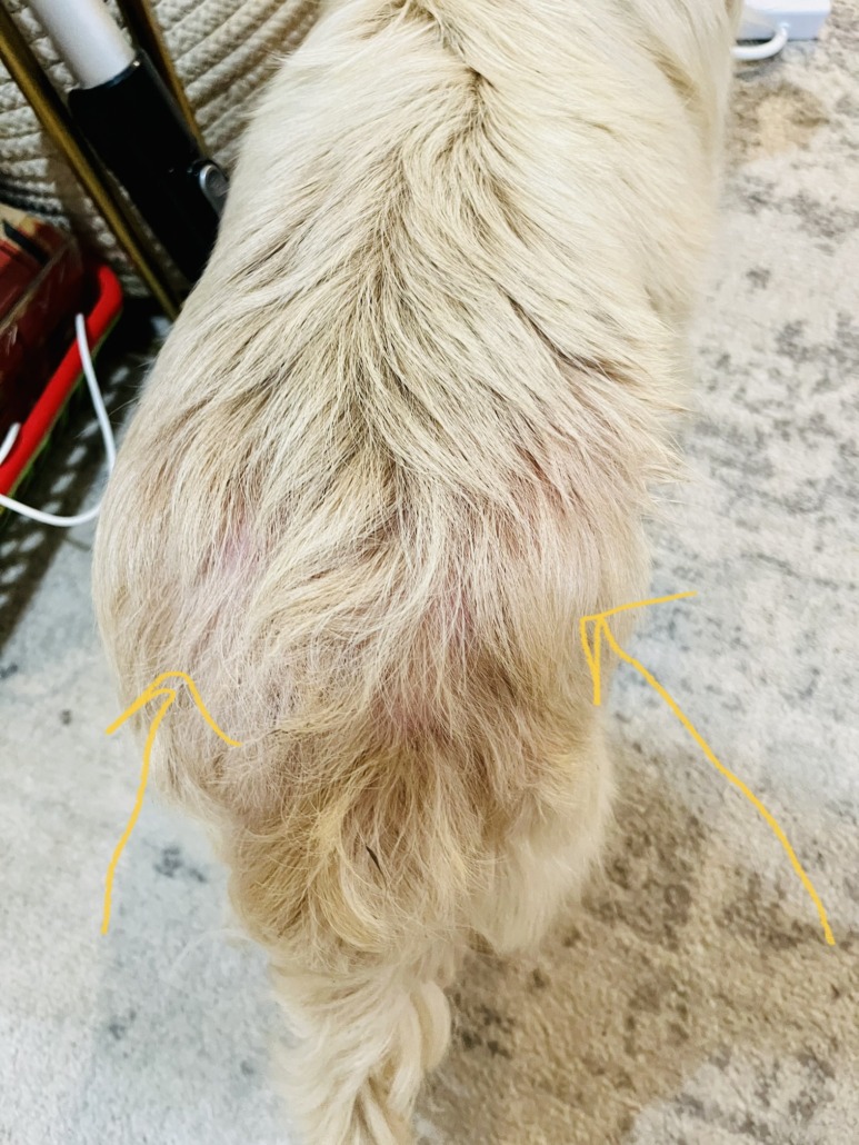 Small female dog found near 42nd and Kingsley. No collar, and fleas. She has raw red skin around tail, has obvious irritation and itching due to untreated fleas a countless flea bites concentrated near tail. She was rescued while running back and forth across 42nd where traffic was heavy due to State Fair parking. Proof of ownership is required. I took her to the vet today. She is not microchipped. The vet said that it is clear she’s had fleas for a long time, as they have caused a skin infection. Dog is not being cared for properly.