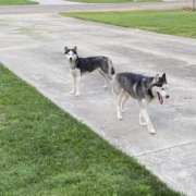Two active Huskies with collars but no visible ID. Headed east on Lorrain toward Binford, were unsafe in traffic on Allisonville road