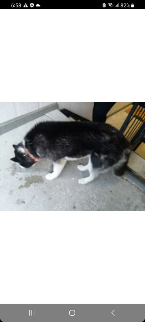 A big husky very friendly, found in pangea-hills apartments indianapolis in 46224. He is wearing a red collar no tag.