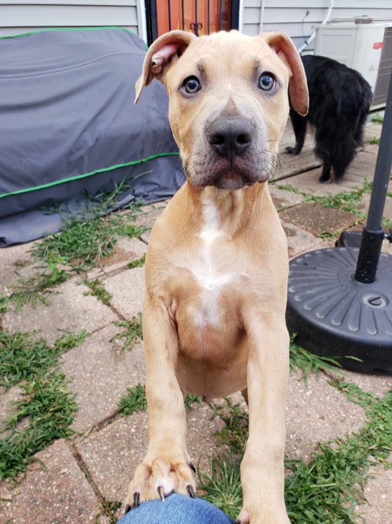 Intact male puppy, tan with white chest. Found at 11th and Bosart in Little Flower/Irvington area.