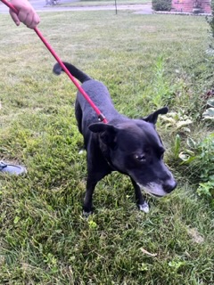 Black male mix with a little gray on the face. White extremities. Friendly. Proof of ownership required