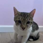 He’s a black and grey kitty how is fully intact. He as sweet as ever!
