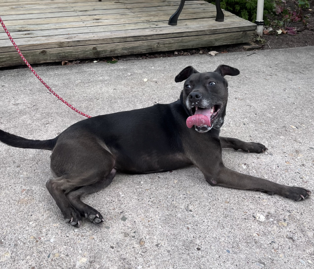 Black maybe pit mix. Green collar