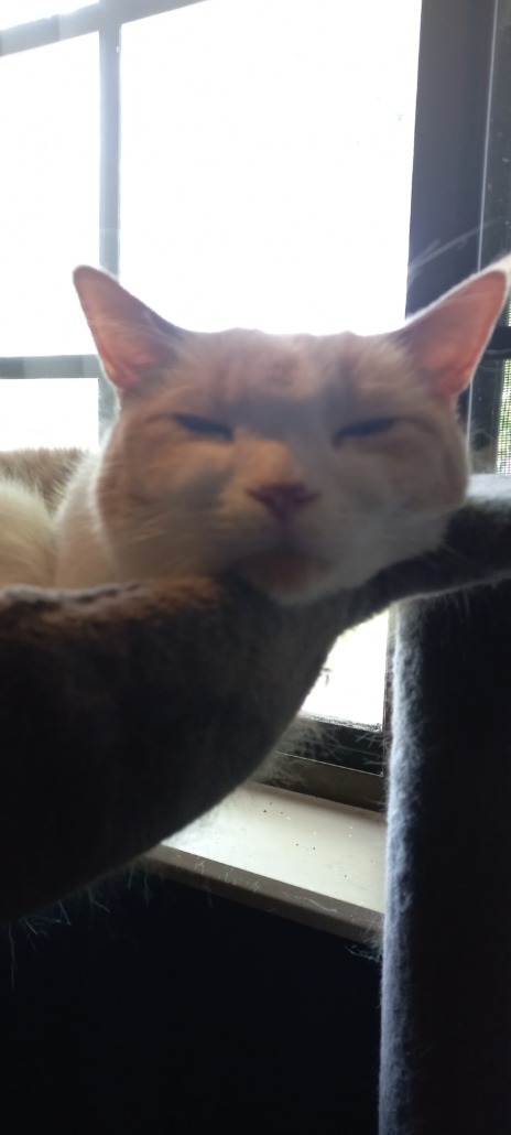 Magellan is about 2.5 years old and is very sweet. He had some health issues when we found him a fee years ago and because of that he does not hear well and his right pupil is bigger than his left pupil.