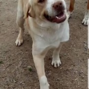 Mostly golden with white. Wilson does smile which can make him look like he’s snarling but he is NOT! He is the sweetest, most gentle boy. He’s only ever known our rescue, based out of Arkansas, and is new to the area and his family. He has had sitings near Franklin college.