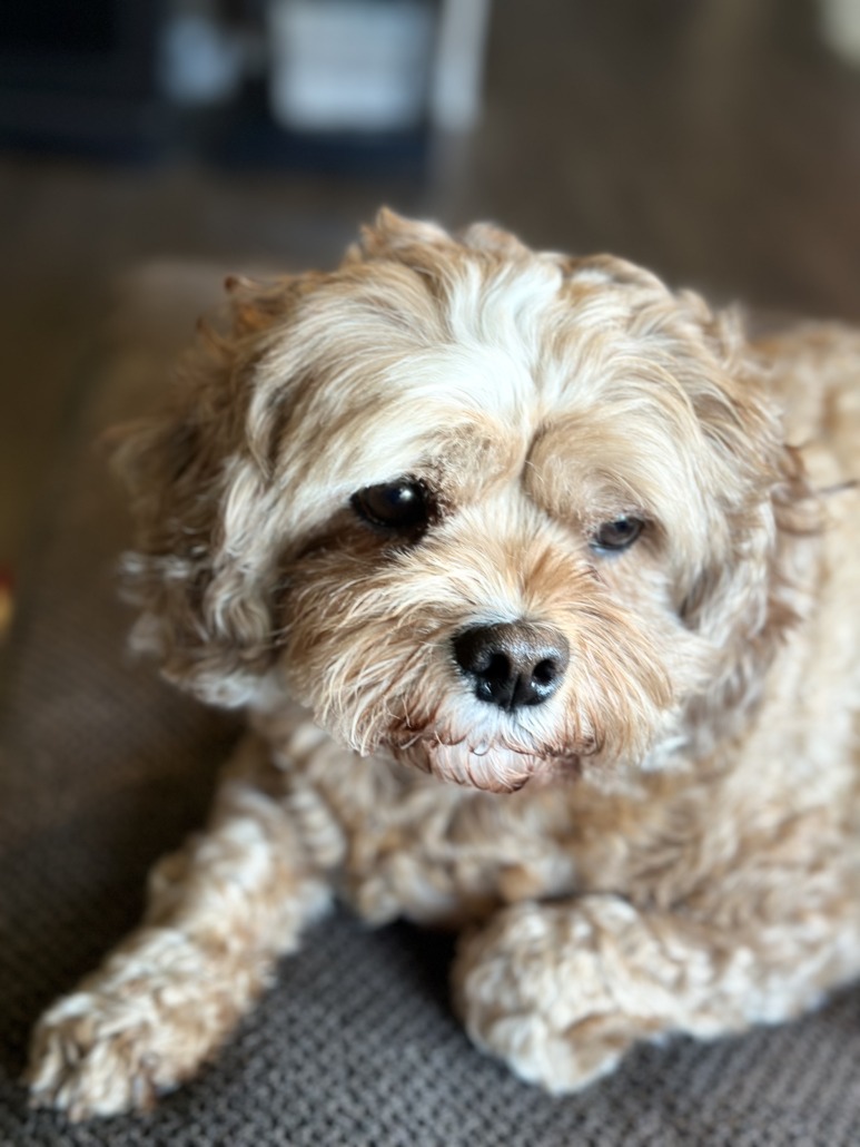 Easton. Cavapoo. I live in Warren Park Irvington east side Indianapolis. Will pay a reward if returned.