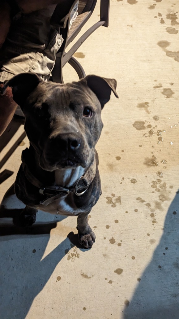 Male pit bull/cane Corso/mastiff mix. He is the sweetest dog. Maybe about 2-3 years old.