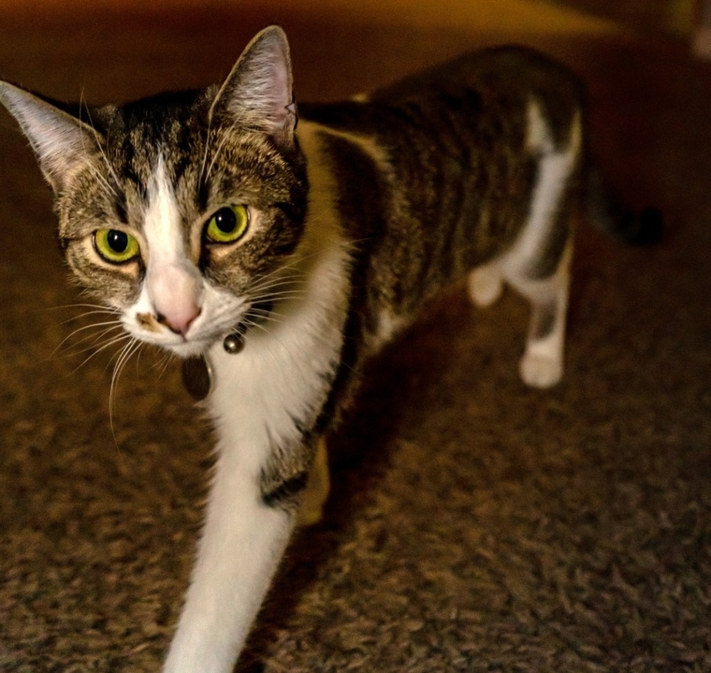He’s about 10 lbs, male, fixed, chipped and wasn’t wearing his collar. We think he ripped a hole in my daughter’s screen and jumped from her second story window, so he might be hurt.