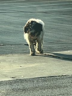 Large sized pup. Looks to be mostly white with large brown spotting. Saw him roaming on the corner of 30th and Dr. Andrew J Brown Ave.