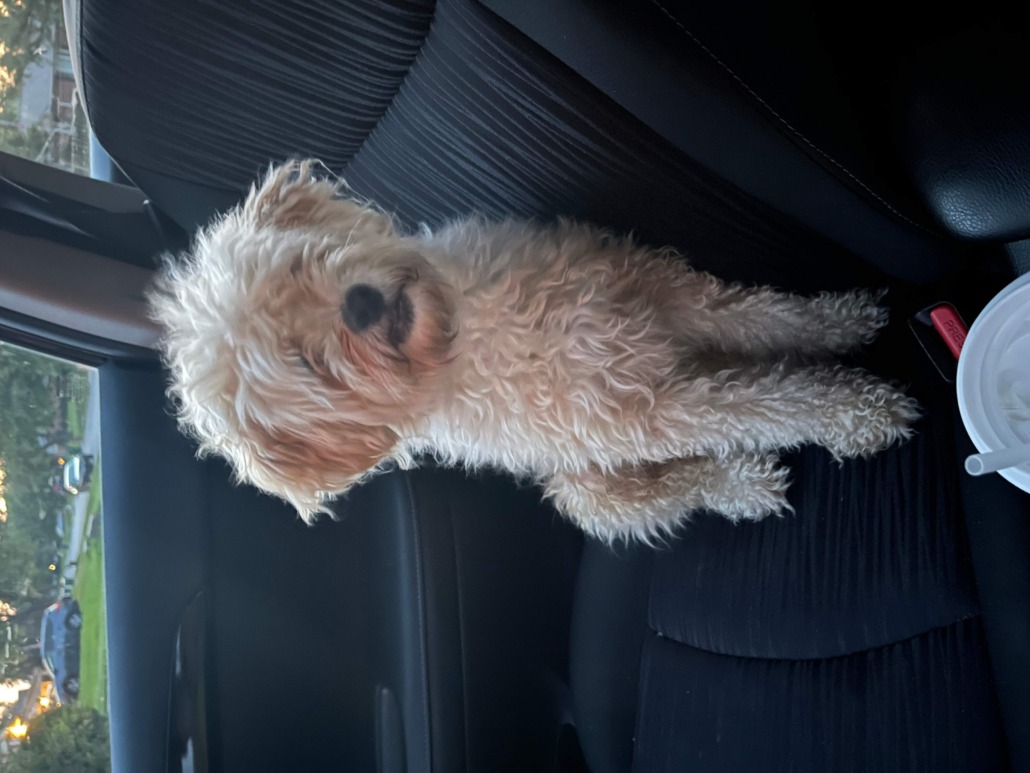 White male dog found on the Westside of Indianapolis on Wednesday 8/16. No collar, microchipped but not registered, neutered, and appears to be a poodle mix puppy. Found at the elementary right by the intersection of W. 34th St and High School Rd.