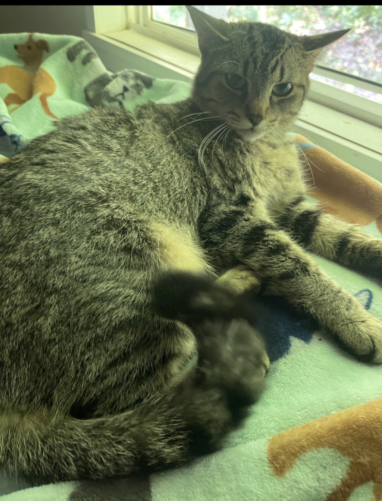 Appears to be a neutered male, no microchip, found near Thompson and Meridian, sweet gentle yet grumpy lol, does not like my male kitten much, uses litter box and eats well,