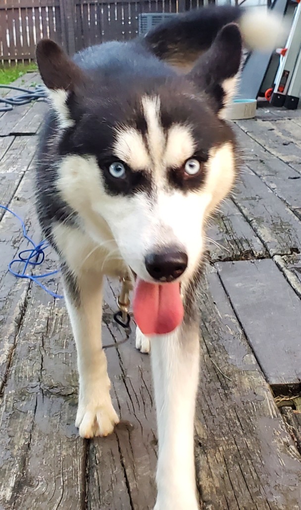 Sky is a purebred siberian husky who got put when my husband left for work! She pulled out of her collar so she is currently not wearing hers. She has blue eyes and is very friendly! Please call me she is very missed by my babies