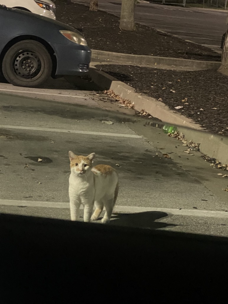 Cat is usually in Walmart parking lot back by automotive looks like someone lost their cat . He’s been out for a couple days . Saw a lady pick him up n take him not sure where but he was back out later .