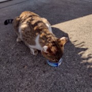Pretty vocal cat found rummaging in my garage. Won’t let me touch him, but seems affectionate. Tan/Black/White. Was very hungry…ate a whole can of tuna.