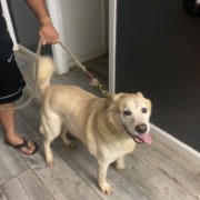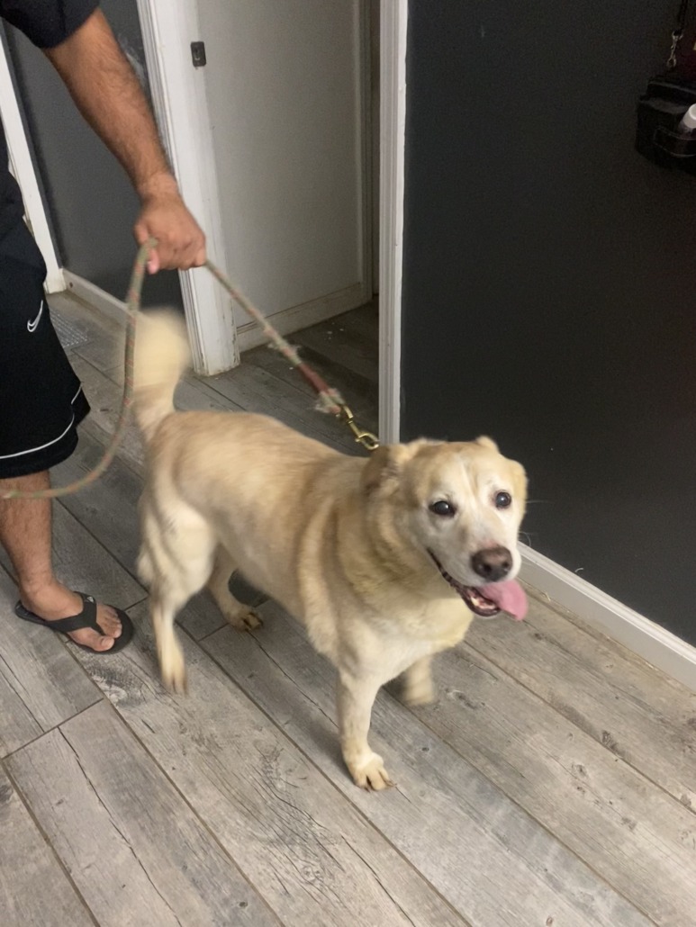 Dog flounder close to Troy Ave. and Lynhurst road. Very friendly male dog, white/off white coat. Proof of ownership is required.