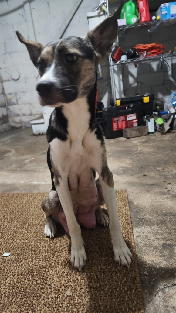 Female Shepard mix, seems to have had puppies recently but no sign of them. No collar. Bit of white fur on her neck. Proof of ownership required for release.