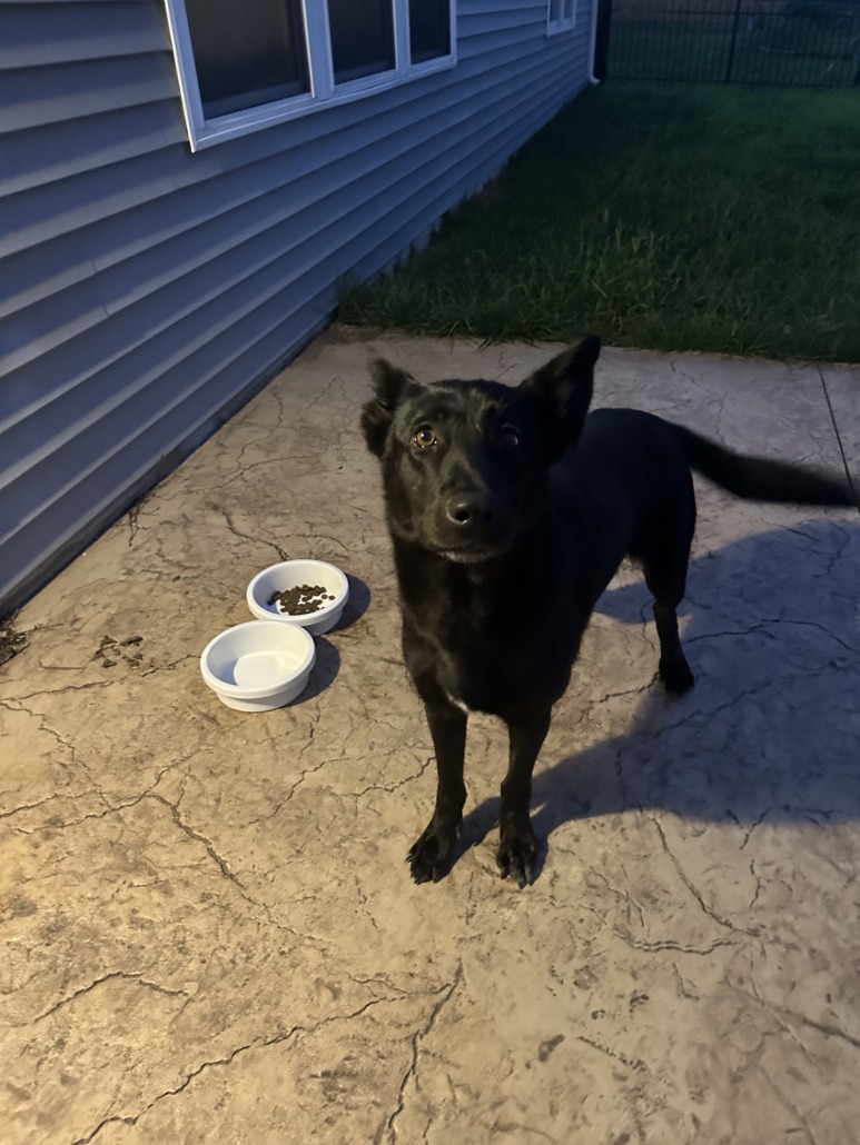 Black German Shepard with small white patch on chest. *proof of ownership required*
