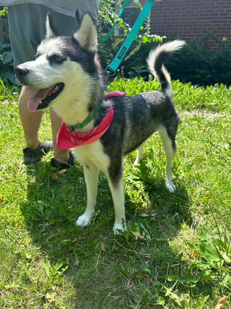 Ruby is a small female husky weighing about 40-45 pounds. Black and white with some grey. She is friendly and microchipped. My wife and daughter are a wreck and missing her very much.