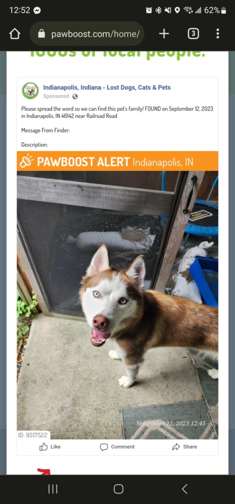Found Dog, Alert #61522 Indianapolis, found near Railroad Road Railroad tracks