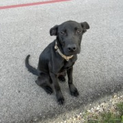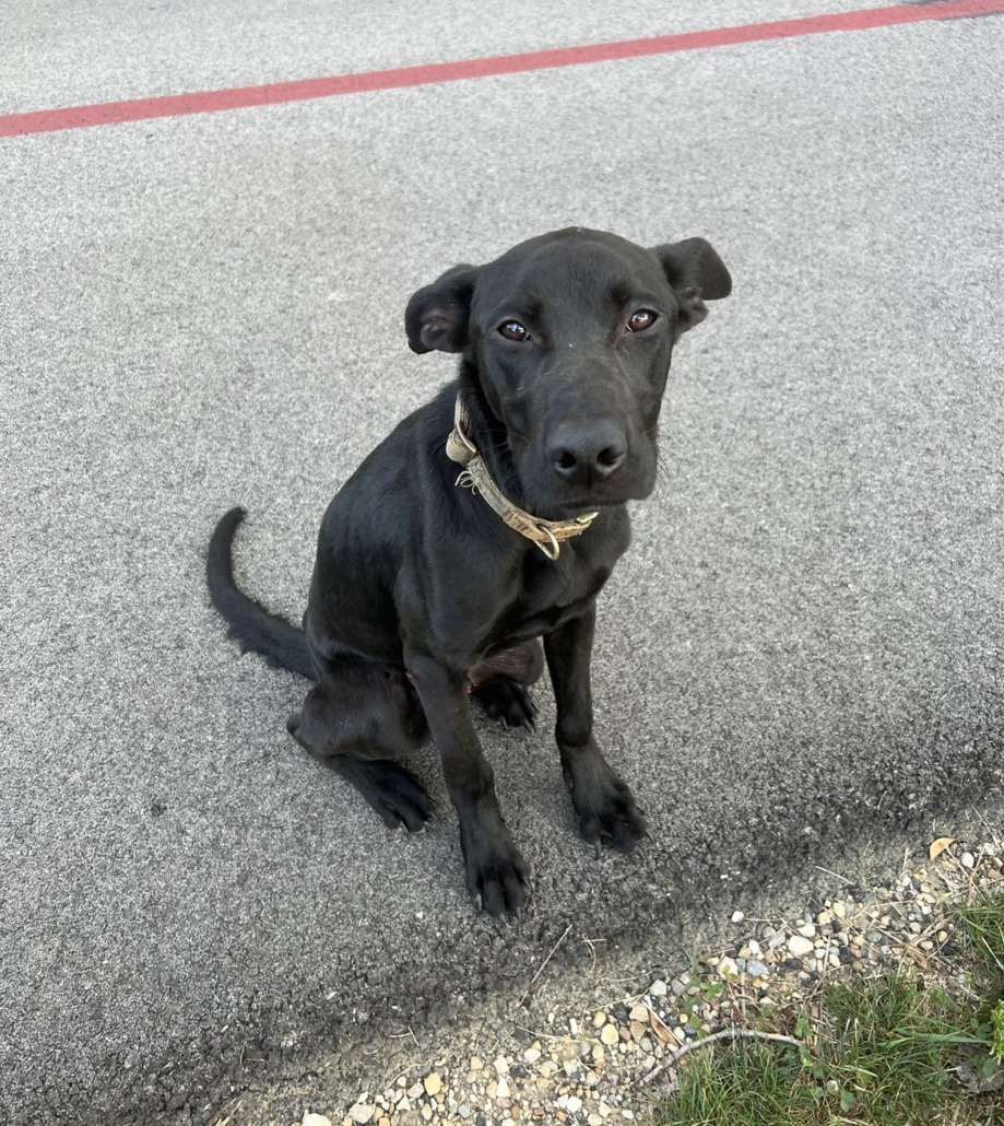 Male black lab mix. 30lbs. Very friendly and skinny.