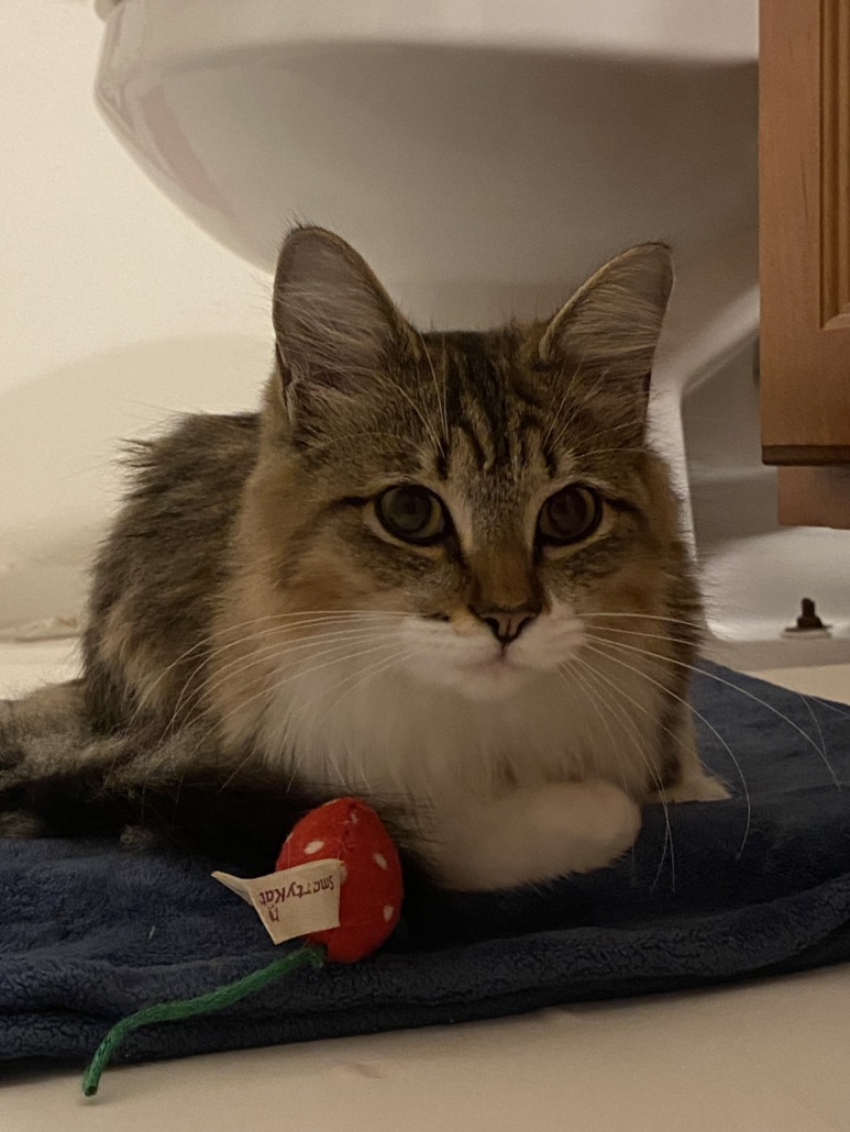 White/tabby found near 1809 cholla ct and e 88th st. My apartment complex is not pet friendly. I can’t have any pets.