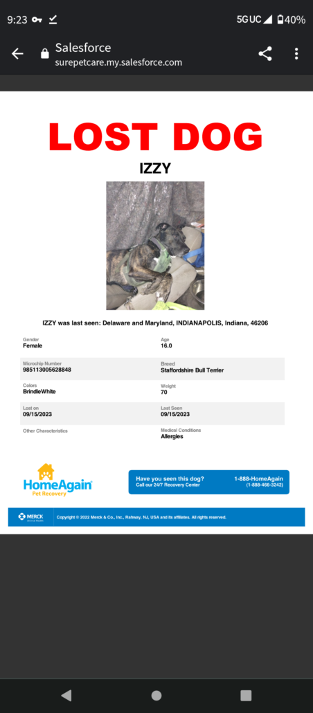 Lost Dog, Alert #61682 Izzy missing near Meridian and Louisiana, last seen at meridian and Maryland, Indianapolis46206