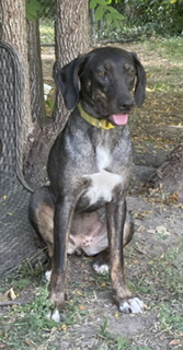 Darla is a 7 month old hound mix who jumped our fence. She is very sweet and very timid.
