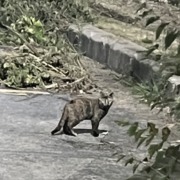 Small tortoise shell kitty hanging out around the McDonald’s and the woods along the backside of it.