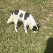 Small white dog with black spots found running down S Randolph St toward Raymond