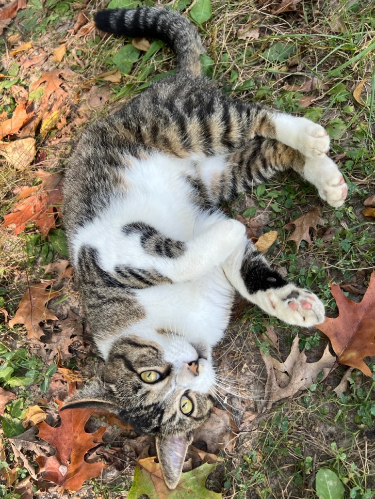 grey tabby colored cat, seems fairly young. Saw this guy a few nights ago at Notch apartments, then saw him again today near Jordan YMCA. I think he’s a stray but wanted to post him just in case he’s someone’s pet! Very sweet boy, can’t take him in because we have cats.