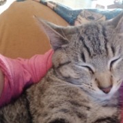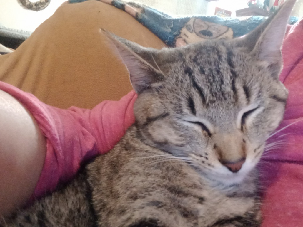 Small gray striped cat. Possibly 5 months old. Found as a stray. Doesn’t act feral.