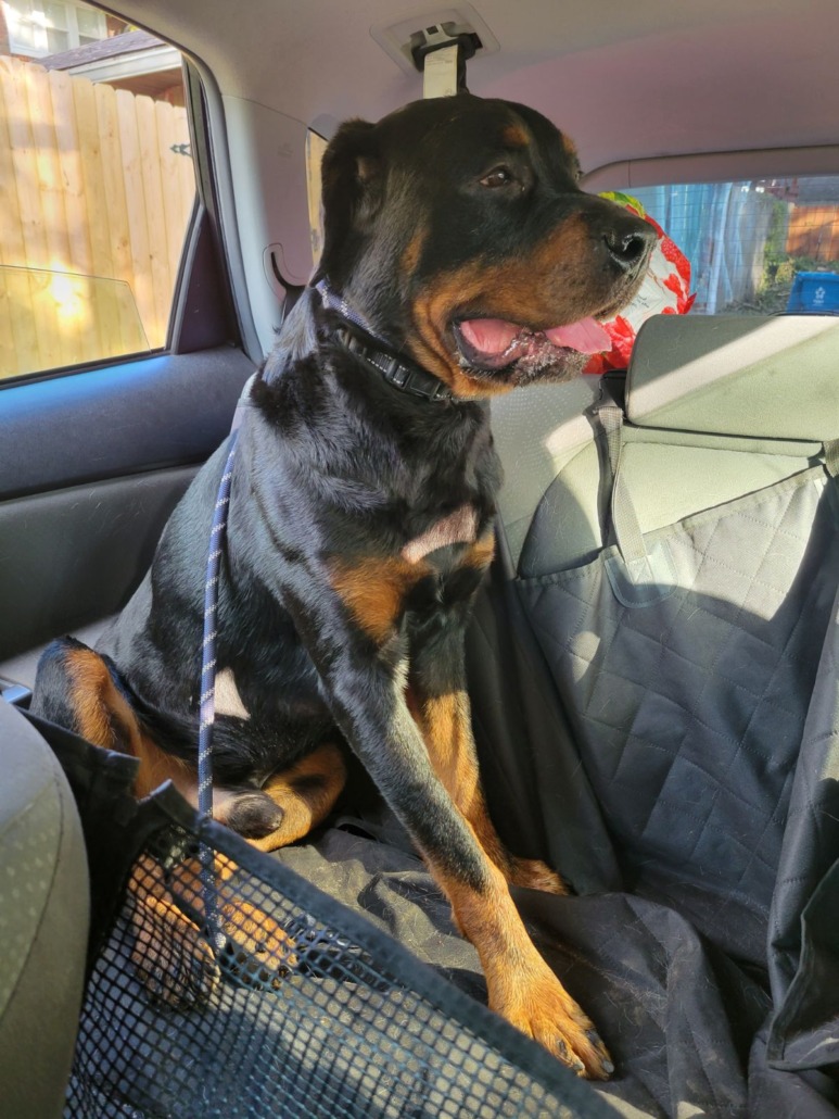 Rottweiler found around College Ave and 39th Street. Sweet boy. Was able to collar and get him in the car. Taking him to the City Way Animal Clinic, Fall Creek location (2442 N Central Ave, Suite A, Indianapolis, IN 46205, 317-854-7447).
