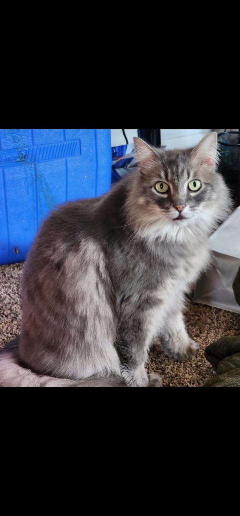 Maine Coon/Grey and fluffy. 10 years old
