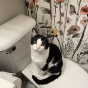 Walter is a black and white, super friendly teenage cat. He usually responds to his name. He can be fast and a little mischievous, is very snuggly and interested in dogs, cats and humans.
