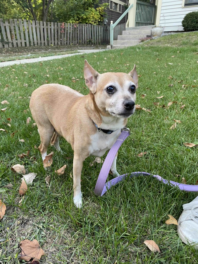 Small, older dog with collar