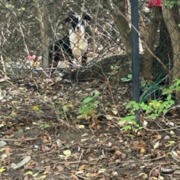 Black and white can not tell sex its like a pit mix behind Emerson place apartments was seen walking the woods towards Emerson and 21st may come back since I left food and water out to try to get it to trust me to hold