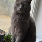 Kiwi is a pretty small grey cat, we think she is a Korat. If she is microchipped it is under the name Dipsy. She is 2 and a half years old. Went missing last night.