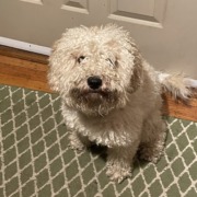 Lost white poodle mix. It is obvious someone loves this dog. Please, help me find its owner.