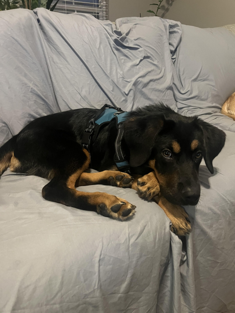Dog is a roughly 6 month old Rotweiler mix.