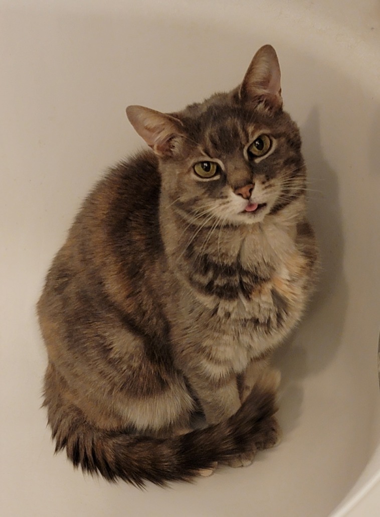 9 year old female diluted Calico with green eyes