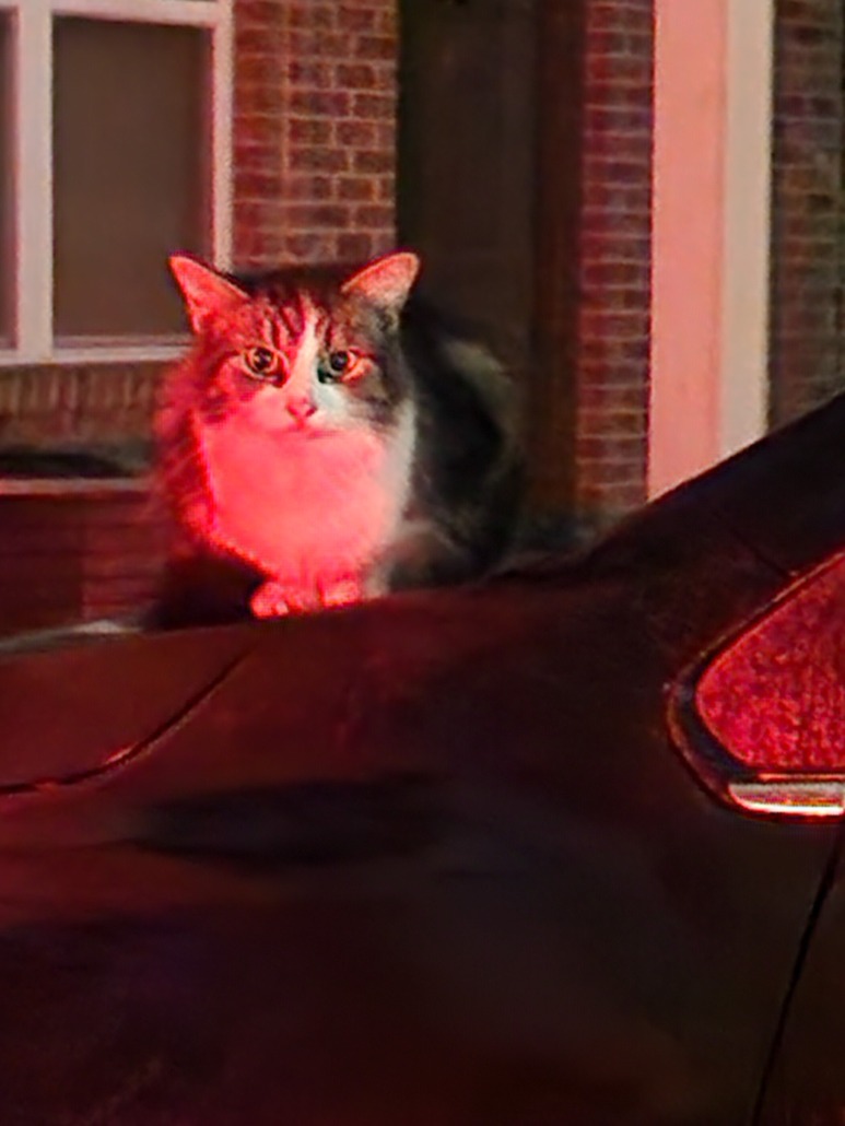 This little guy or girl was seen very early this morning taking cover, trying to stay dry from the rain. Very vocal, seemed scared but friendly. He/she ran off once the rain got heavier, unfortunately she did not come back.
