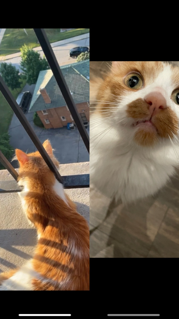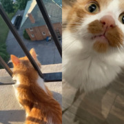 orange & white cat fluffy tail . almost 2years old has few dots on his nose & lips pls bring him back