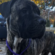 Young brindle mastiff. Microchip pulled up previous owner and not current owner. Seems well taken care of. Found in speedway. Proof of ownership will be required.