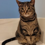 Layla is a chunky tabby with a lot of black. She is friendly and talkative. She’s an indoor cat but has been outside many times. She hopped outside around 2:30am Saturday morning and I haven’t seen her all day. She normally sticks around and would for sure be wanting food by now.