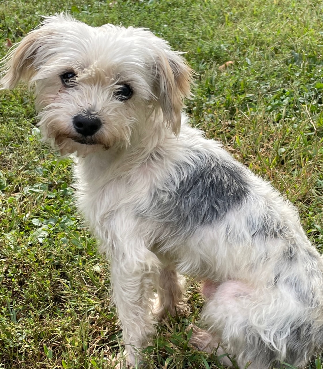 Sky is white with a little gray on him. He is very sweet, but probably timid and scared. He may be traveling with his brother, Yogi. Yogi is an all white short, but sturdy guy. Skye is on the sin side and missing some hair. he is very friendly, but has been through a lot of trauma in his life. Skye is 4 to 5 years old.