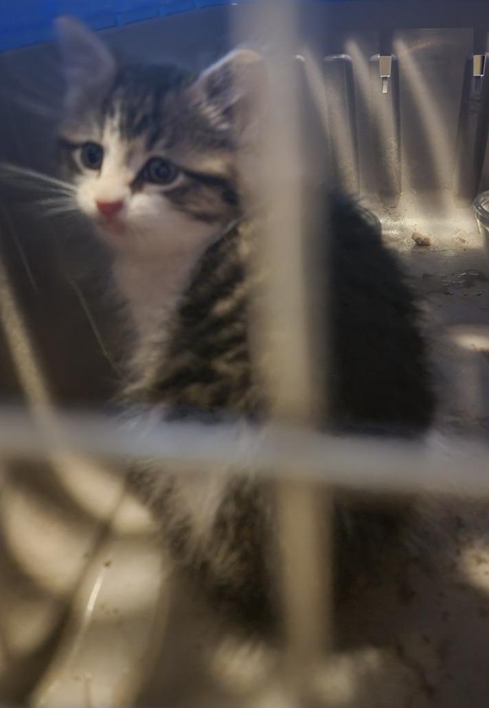 Tiny grey kitten with white belly. Please provide proof of ownership.