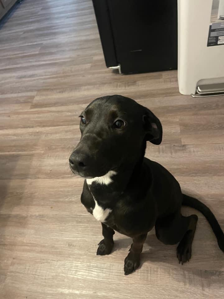 Black lab, female. Looks to be a puppy still. Proof of ownership is required
