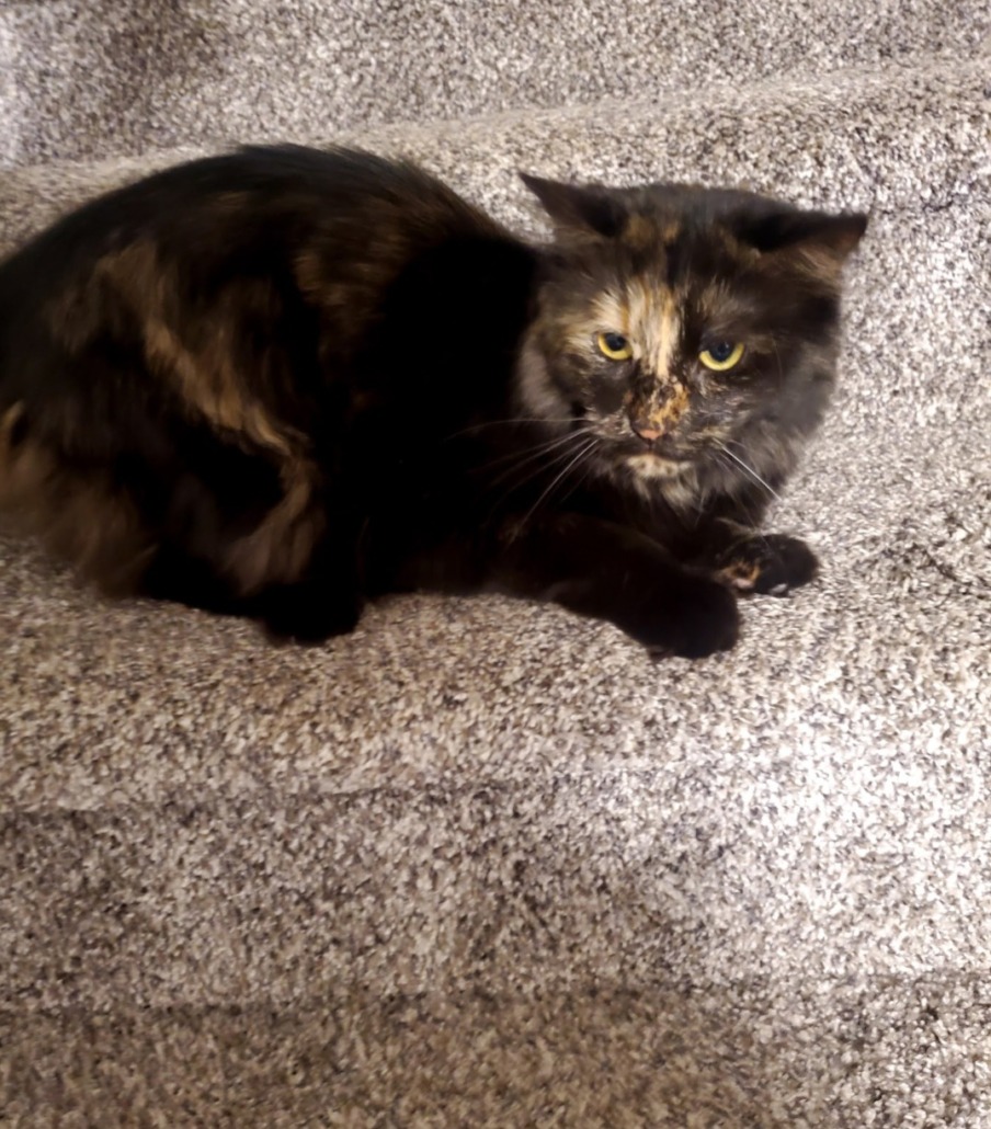 Frigg is a 5 year old female,not spayed , fluffy (med hair) tortie. Last seen in home the evening of 11/5 very unlike her to go outside of the home.