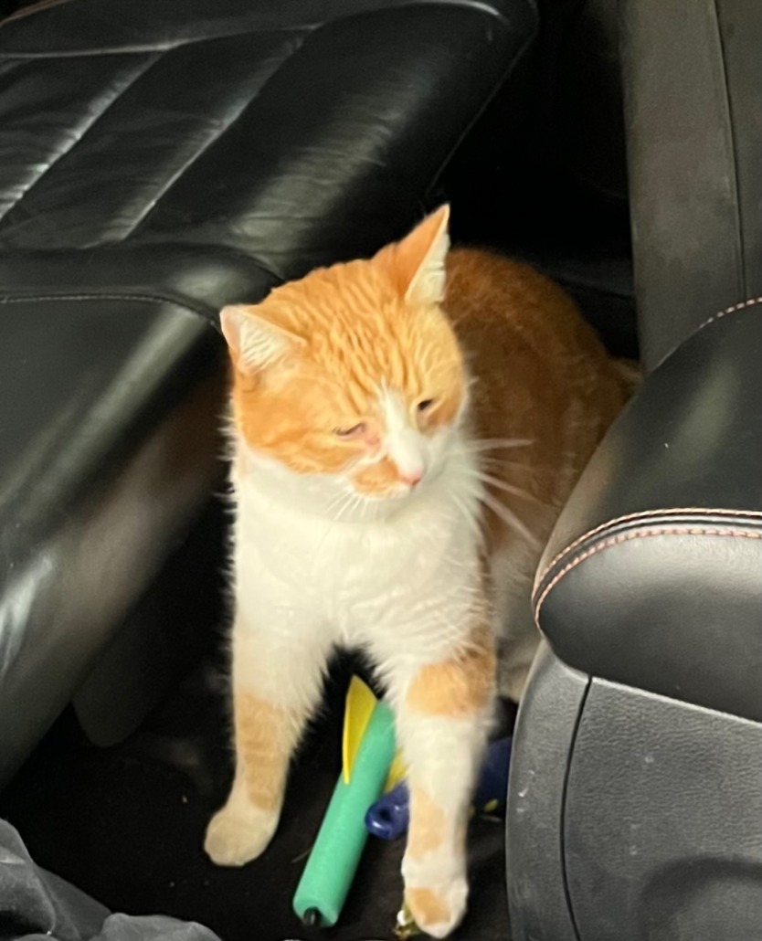 Looking for a missing Brookside neighborhood kitty, orange and white, goes by the name of Frank. Missing from 12th and Oakland. He has weepy eyes, is very gentle and friendly. Has a see through collar on. Just want to make sure he is okay.